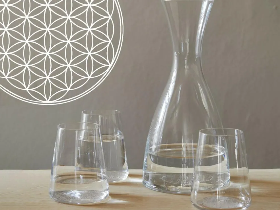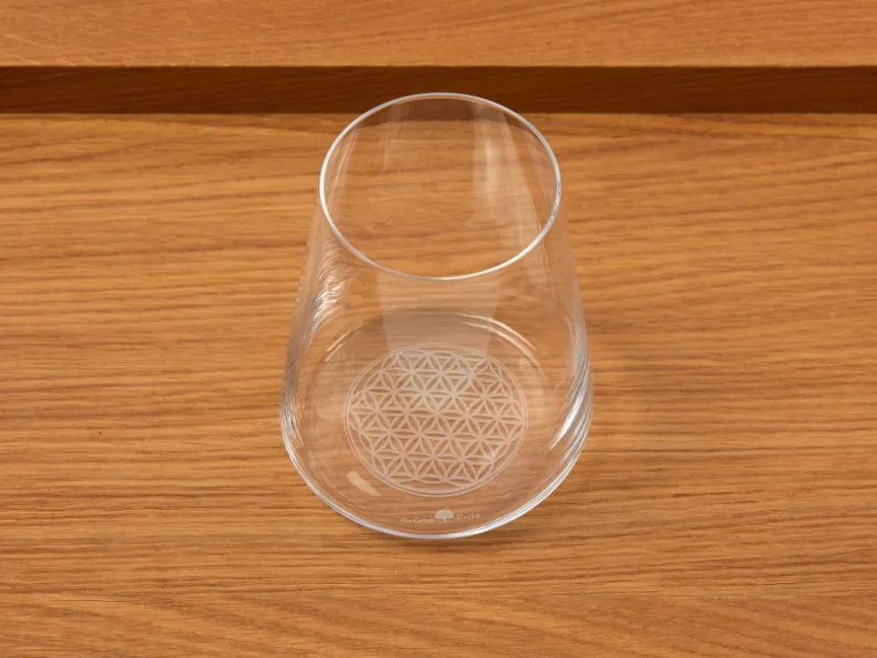 - mit Siebdruck „Blume des Lebens“ am Glasboden