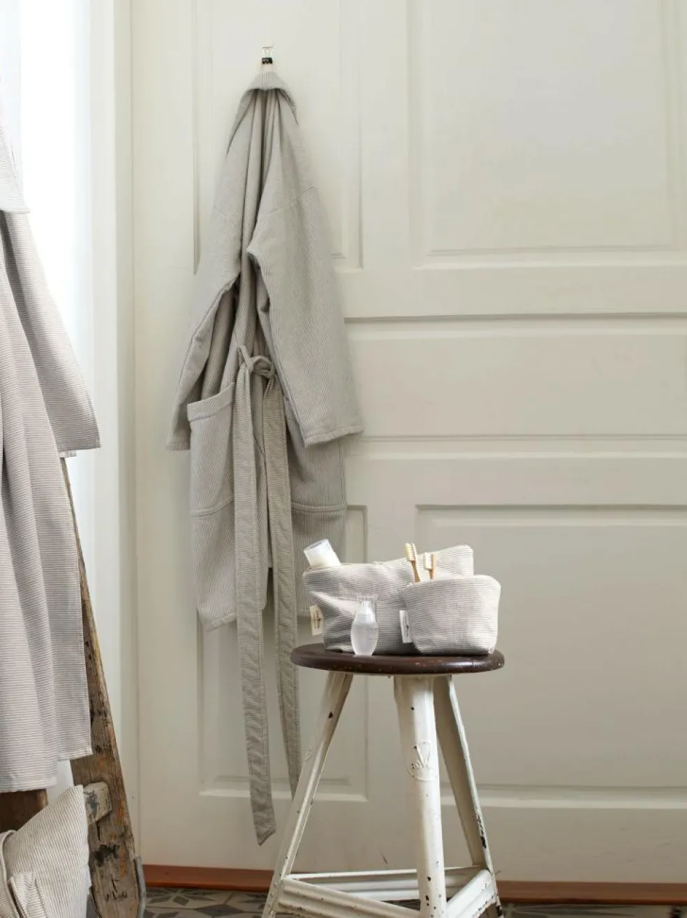 - mit Bindegürtel und Taschen