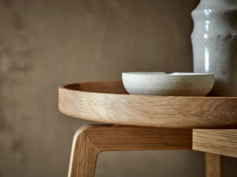Ein feinsinniger, schlank dimensionierter, vertikal ausgerichteter, leichter und mobiler Beistelltisch, der auch in kleineren Räumen gute Dienste leistet, ohne sich selbst in den Vordergrund zu drängen.
