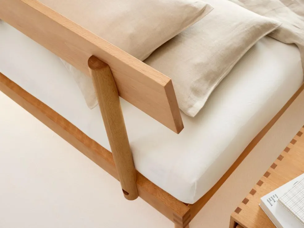 Bett Jukai Pur, mit Stegbetthaupt, inkl. integriertem Lattenrost, 160 x 200 cm, Buche