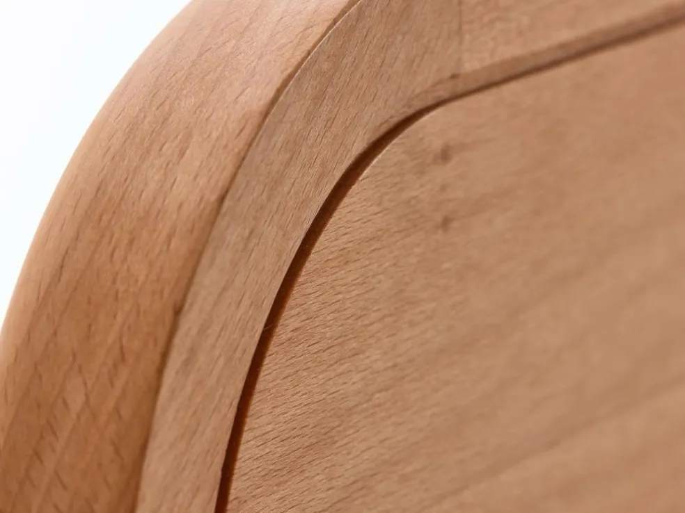 Das harte, kraftvolle und widerstandsfähige Buchenholz verlangt aufgrund seiner natürlichen Kraft viel Erfahrung und Fingerspitzengefühl bei der Verarbeitung. Durch das vorsichtige, schonende Dämpfen des – in frisch geschnittenem Zustand sehr hellen – Holzes im eigenen Saft bekommt die Buche eine zart hellbraune Tönung und nimmt durch die Behandlung mit natürlichem Öl eine kräftigere, an Zimt erinnernde Farbe an.Außerdem bewirkt der Dämpfprozess, dass das Buchenholz bei wechselnder Luftfeuchtigkeit (Sommer/Winter) deutlich weniger quillt und schwindet.- Rohstoffherkunft