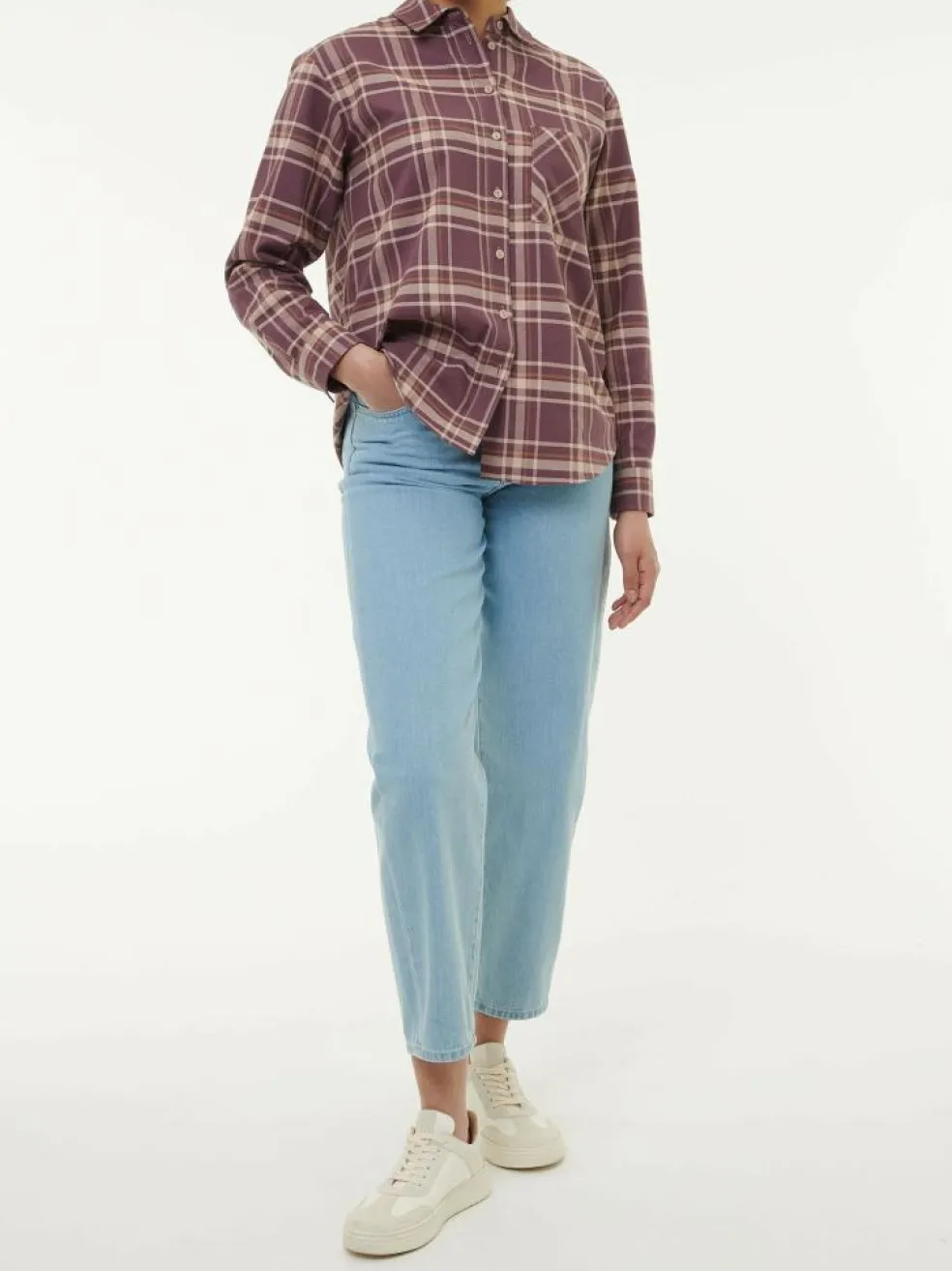 Bluse aus Bio-Baumwolle, 75 karo aubergine, 38, GOTS