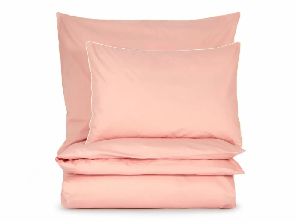 Die Bettwäsche Edna begeistert mit ihrer besonderen Leichtigkeit und edler Haptik aus hochwertigem Perkal. Die feine, dicht gewebte Baumwoll-Qualität zeichnet sich durch ihre glatte Oberfläche und ihre besonders atmungsaktive Struktur aus – ideal für erholsame Nächte und ein angenehmes Schlafklima. Der Deckenbezug überzeugt mit schlichter Eleganz ohne Paspelierung, während die Kissenbezüge mit zarten Paspeln in Kontrast die klassische Formensprache stilvoll abrunden. Das durchdachte Konzept ermöglicht es, Decken- und Kissenbezüge nach Belieben zu kombinieren und dabei stets ein harmonisches und stilvoll elegantes Gesamtbild zu schaffen.