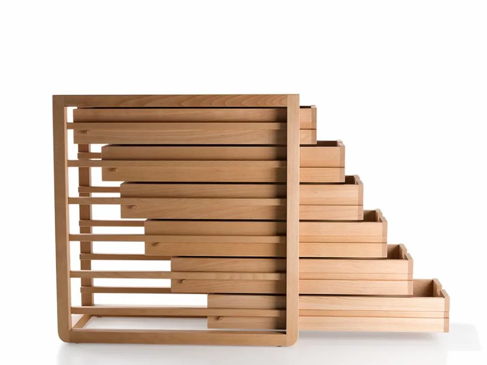 Der Einschubschrank überzeugt mit bemerkenswert tiefen Schubladen, breit genug für A4-Format.
