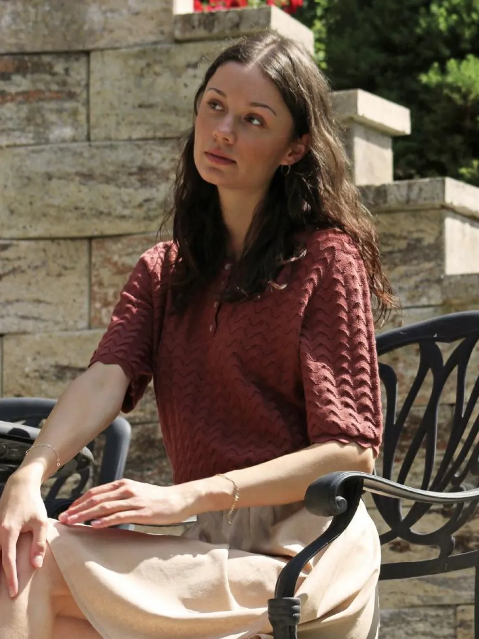 Halbarm-Pullover aus weicher Ajour- Feinstrick-Qualität aus reiner Baumwolle kbA – mit liebevollen Details und femininem Schnitt. Eine dekorative Zackenborte in Kombination mit zarten Strickbündchen an Hals-, Ärmel- und Saumabschluss verleihen dem Modell eine besondere Note. Die kurze Knopfleiste am Rundhalsausschnitt rundet den lieblichen Look harmonisch ab.