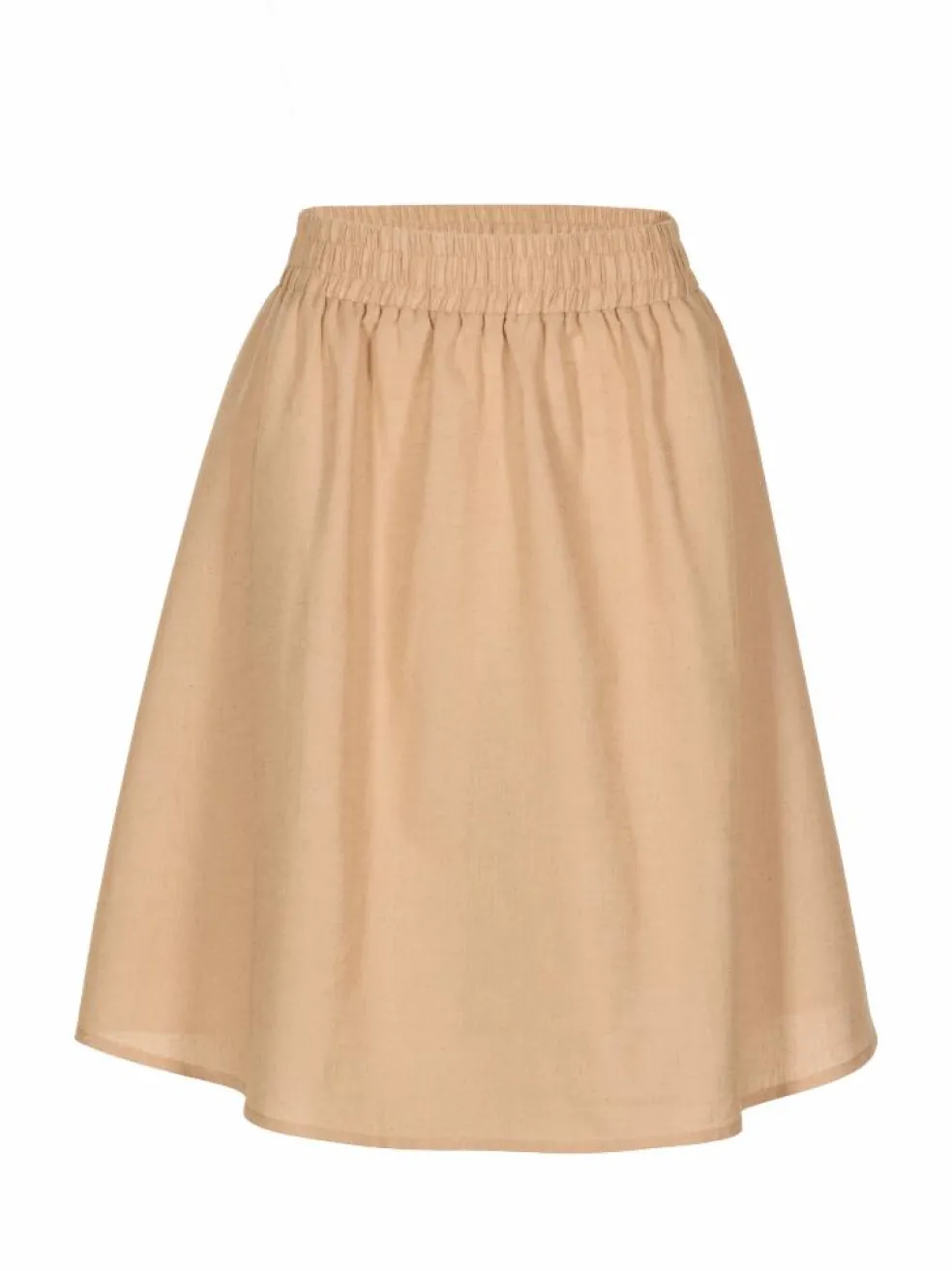 Sommerlicher Rock aus weichen Naturmaterialien: hautfreundliche Baumwolle kbA und hochwertiges Leinen – weich strukturiert und angenehm auf der Haut.Mit knieumspielender Länge und Gummibund, sorgt das Modell für bequemen Sitz und eine schmeichelnde Silhouette. Der leichte Stoff verleiht dem Rock einen fließenden Fall – ideal für warme Tage und vielseitig kombinierbar.