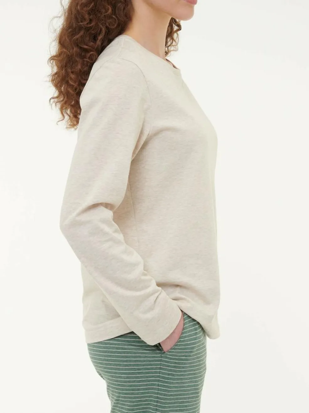 Lockeres Langarm-Shirt aus besonders hautfreundlicher Baumwolle: bequem, sanft zur Haut und weich im Griff. Das Oberteil in Single-Jersey-Qualität hat überschnittene Schulterpartien und einen Rundhalsausschnitt mit 1×1-Rippbündchen.