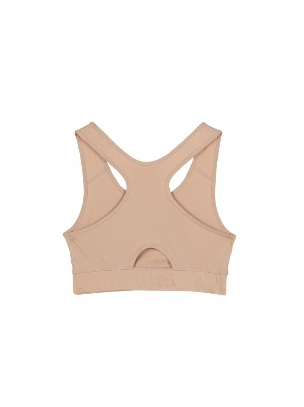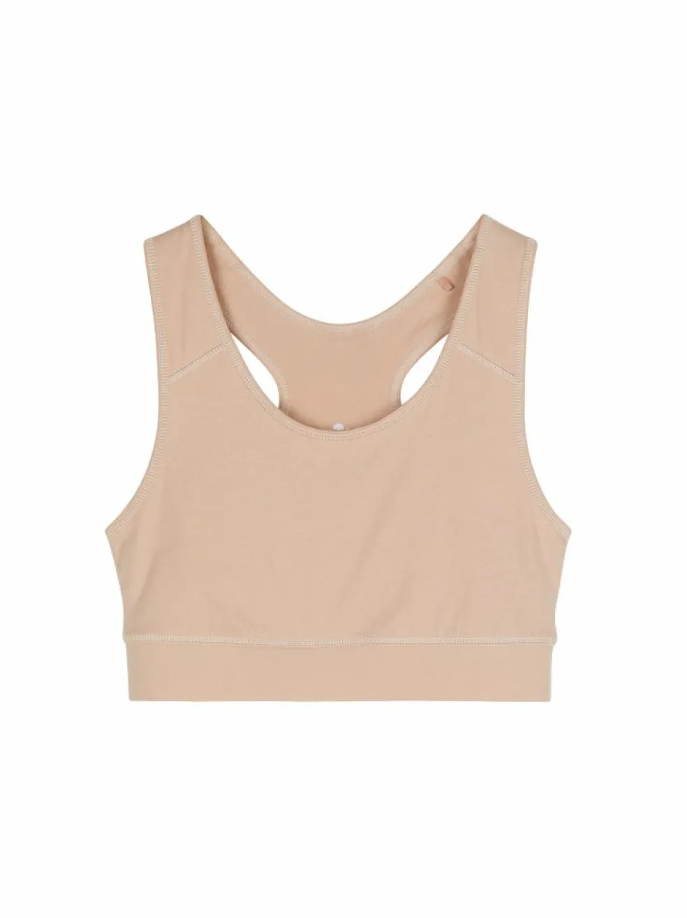 Sportliches Yoga-Bra-Top aus feiner Baumwolle und ohne Elasthan – anschmiegsam, weich, flexibel. Das Bustier ist doppelt gearbeitet, mit sportivem Boxer-Rücken, tiefem Armausschnitt und breitem Gummibund am Saum. Dank der durchdachten Schnittführung entsteht natürlicher Tragekomfort und optimale Bewegungsfreiheit.