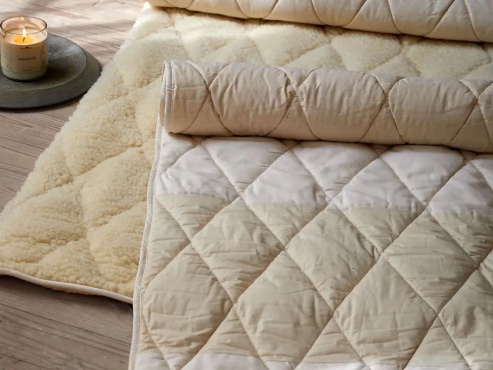 Diese Yogamatte entsteht aus reiner Baumwolle und wird bei unserem Partnerbetrieb nach dem strengen Global Organic Textile Standard sozial fair und umweltschonend gefertigt sowie zertifiziert. Der Bezug der Oberseite besticht mit feinem Baumwoll-Halbpanama mit einer mittig platzierten hauchdünnen Antirutsch-Beschichtung, um ein eventuelles Rutschen von Händen und Füßen während der Yoga-Übungen zu vermeiden. Die Unterseite besteht aus leichtem, dicht gewebtem Baumwoll-Perkal (ebenso fein beschichtet), die Füllung aus reiner Baumwolle. Diese Baumwoll-Schichten sind rautenförmig miteinander versteppt und mit einem Einfassband sauber verarbeitet. Zwei Baumwollbändchen sorgen für ein unkompliziertes Zusammenrollen der Yogamatte.