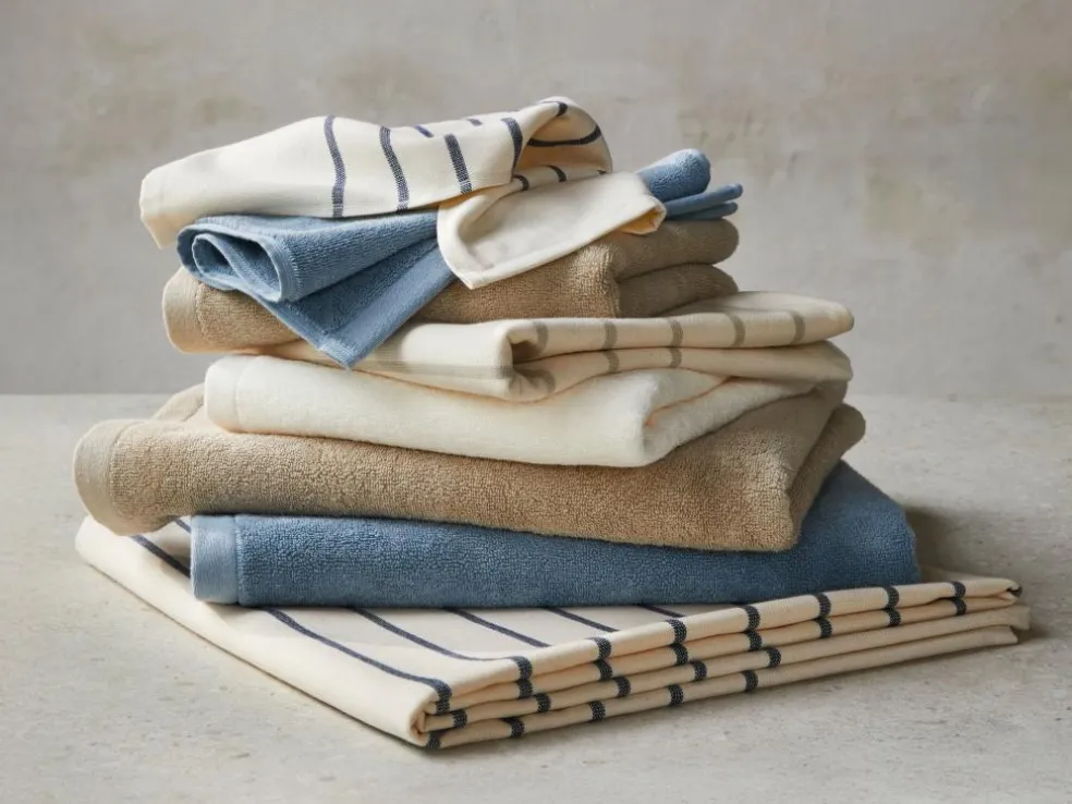 Das feine Streifen-Dessin verleiht den Textilien eine zeitlose Optik, die sich harmonisch in jedes Badezimmer einfügt. Eine praktische Aufhängeschlaufe ermöglicht einfaches Verstauen und Trocknen.