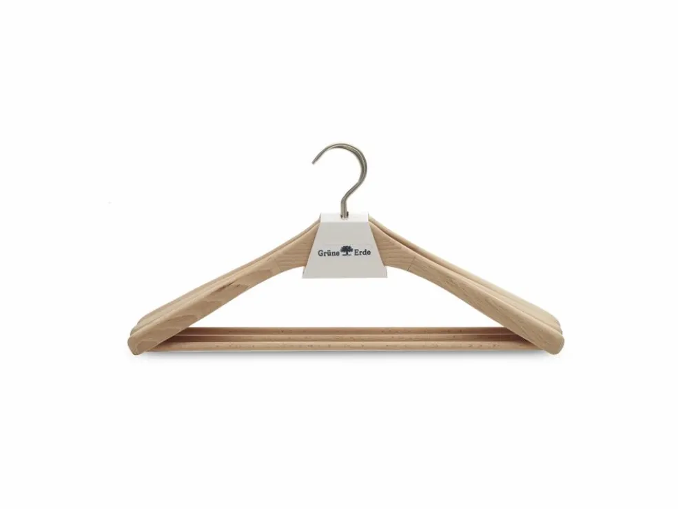 Die Edel-Kleiderbügel schlechthin! Massives Buchenholz, naturbelassen, solide Dimensionen, im Sauerland in aufwändiger Handarbeit gefertigt, bis ins Detail perfekt verarbeitet: aus mehreren Teilen sorgfältig verleimt, sanft gerundete Kanten, ganz glatt geschliffene und polierte Oberfläche, vernickelte, fest im Holz verankerte, kräftige Metallhaken.