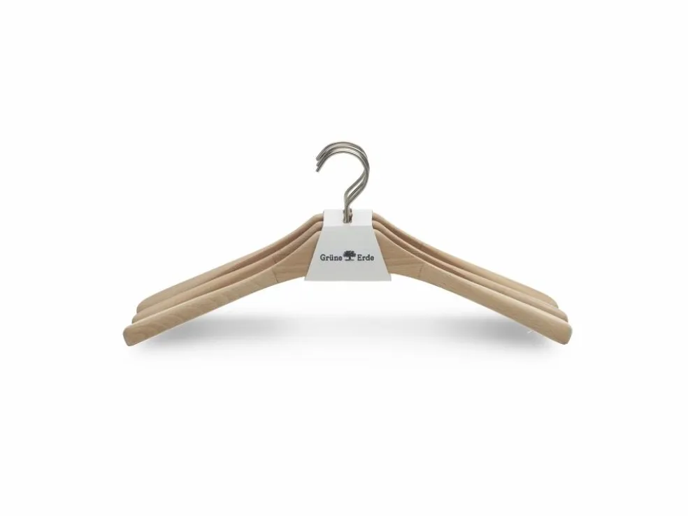 Die Edel-Kleiderbügel schlechthin! Massives Buchenholz, naturbelassen, solide Dimensionen, im Sauerland in aufwändiger Handarbeit gefertigt, bis ins Detail perfekt verarbeitet: aus mehreren Teilen sorgfältig verleimt, sanft gerundete Kanten, ganz glatt geschliffene und polierte Oberfläche, vernickelte, fest im Holz verankerte, kräftige Metallhaken. Für breite Schulterstücke.