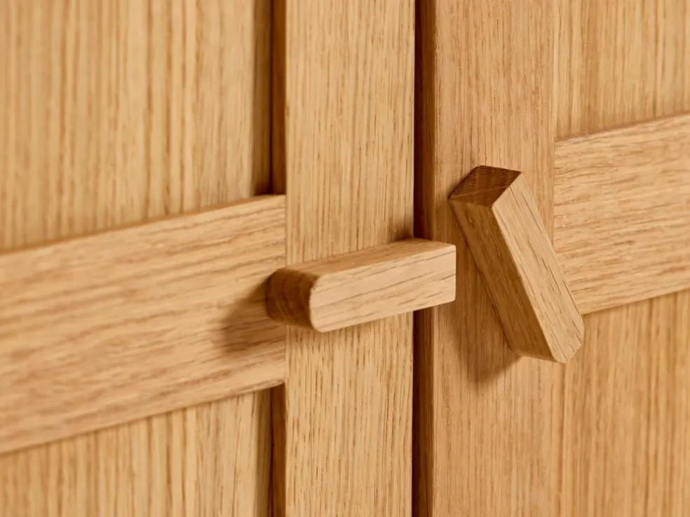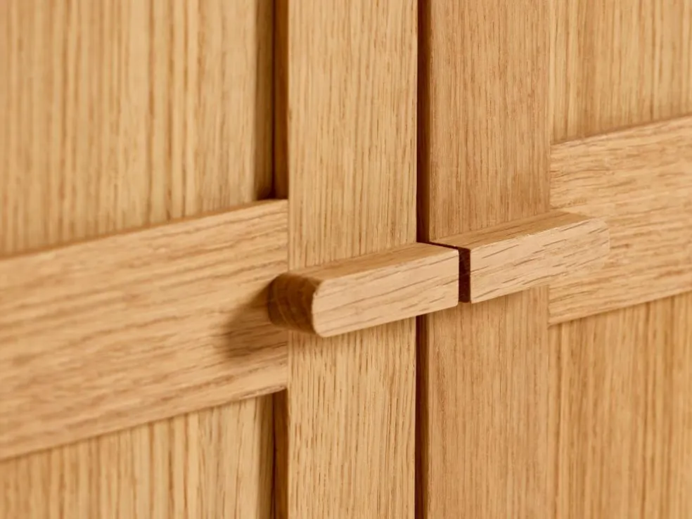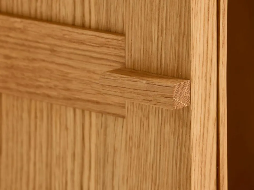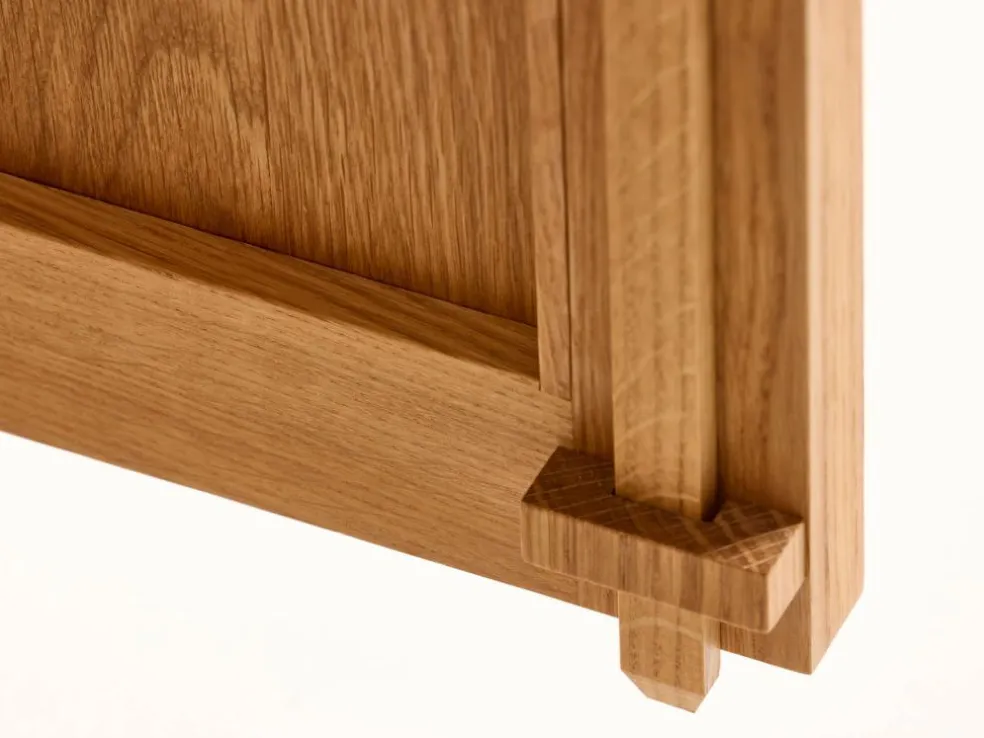 Vollholz aus nachhaltig bewirtschafteten Wäldern, handwerklich erstklassig verarbeitet; Rahmen und Füße Massivholz, metallfreie, wiederholt zerlegbare Verbindungen; von Hand geölte Holzoberfläche.- Verarbeitet in
