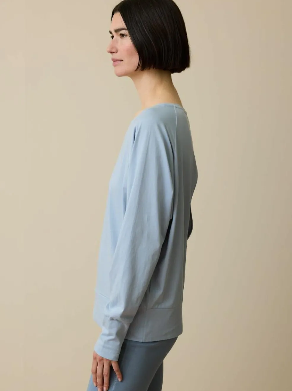 Anschmiegsames Fledermaus-Shirt in feiner Single-Jersey-Qualität. Weiche Baumwolle sorgt für ein sanftes Gefühl auf der Haut, eine lockere Silhouette mit Fledermausärmeln für angenehmen Tragekomfort. Abgerundet wird das Modell mit dem U-Boot-Ausschnitt mit einem modernen Cut-Out auf dem Rückenteil sowie mit hohen Bündchen am Saum und Ärmelsaum.