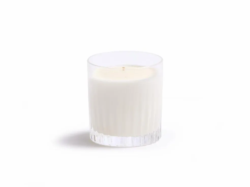 Natürliche Duftkerze SONNENKIND im Trinkglas mit Rillenschliff, ø 8,5 cm, H 9 cm