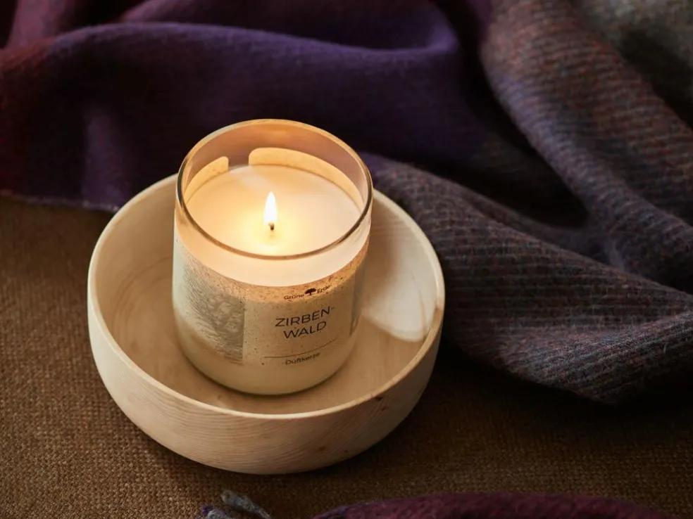 Die Duftkerzen werden in rezyklierte Gläser aus Österreich gegossen. In vielen kleinen Produktionsschritten werden Glasflaschen in besondere Kerzengläser verwandelt. Sie werden sorgfältig gewaschen, geschnitten und die Kanten fein säuberlich geschliffen. Das Glas kann nach Abbrand der Kerze leicht gereinigt und praktisch wiederverwendet werden. Durch unseren dazu erhältlichen Zirbenholzdeckel wird das Glas zu einer Aufbewahrungsdose mit angenehmen Zirbenduft.