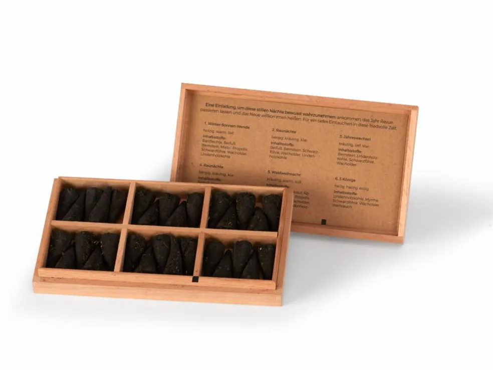 Räucherkegel Heilige Zeiten im Holzkistchen, 6 x 5 Räucherkegel