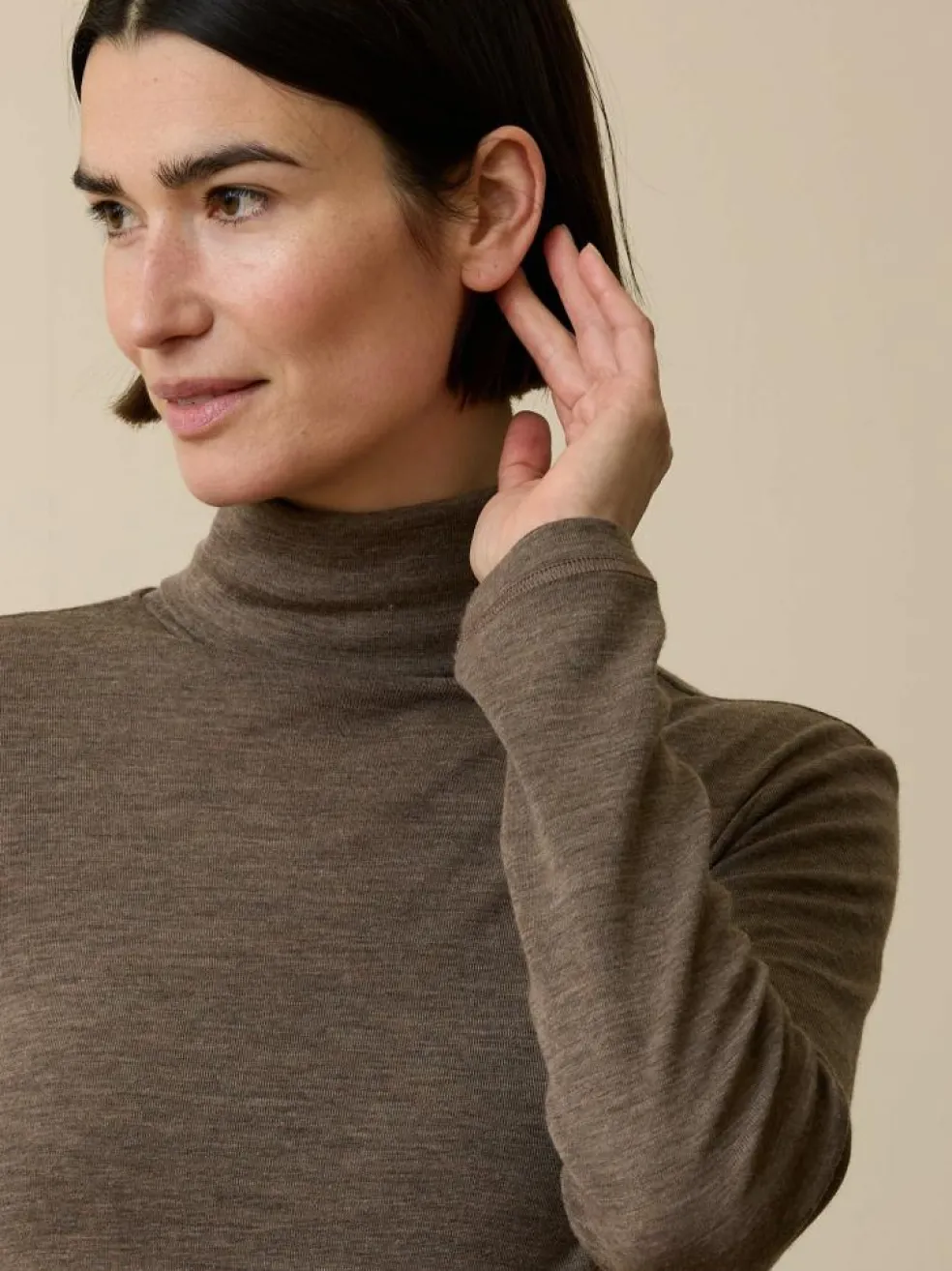Rollkragen-Shirt aus hochwertiger Merinowolle: weich, temperaturausgleichend, anschmiegsam. Das Naturmaterial ist trageangenehm, wärmend und sorgt für ein leichtes Gefühl auf der Haut. Komplementiert wird der figurumspielende Schnitt mit einem Rollkragen und langen Ärmeln. Das Modell mit der sanften Melange-Optik ist ein zeitloser Allrounder – für zuhause oder unterwegs.