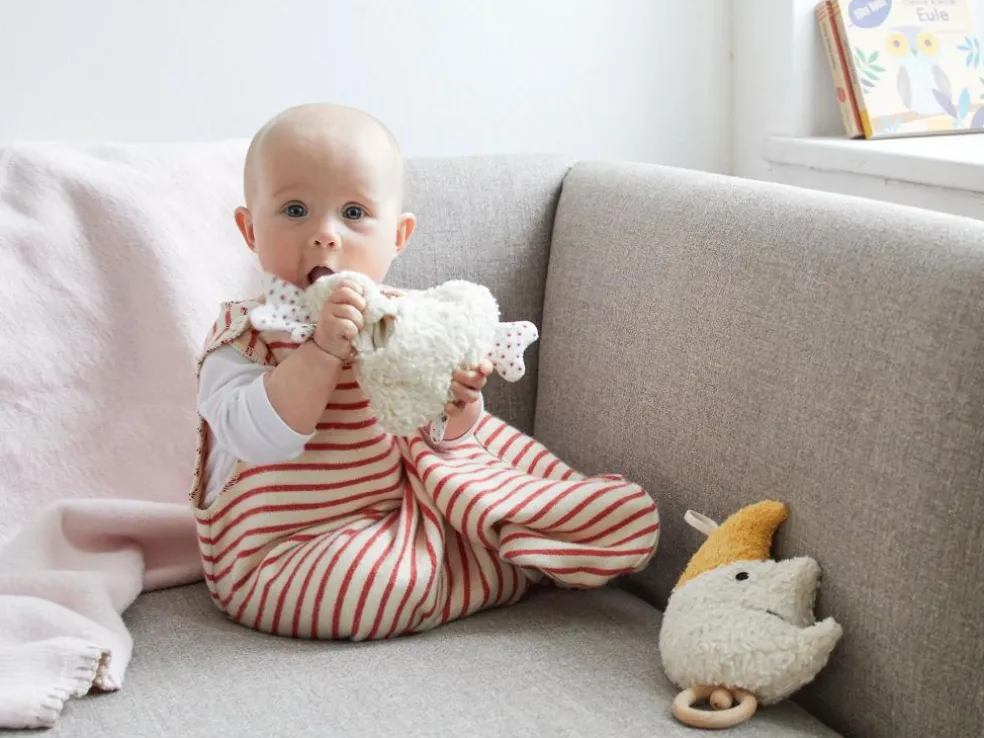 Spieluhr Mond Luan mit Lied „Sandmann, lieber Sandmann“, ca. 16 cm, Bezug: 100 % Baumwolle, Baumwolle kbA, Füllung: 100 % Schurwolle (Schaf), Schurwolle kbT
