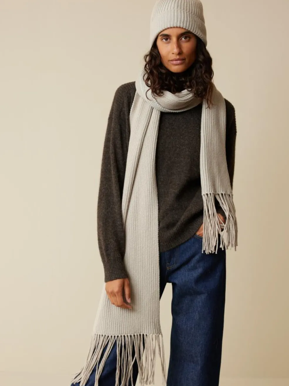 Für jedes Outfit die ideale Abrundung: Schal aus weicher Baumwolle und hochwertiger Alpakawolle. Das Naturmaterial verspricht ein sanftes Gefühl auf der Haut und wärmt ausgezeichnet. Die breite Ripp-Struktur in Kombination mit einem zurückhaltendem Farbton aus einem zweifarbig gezwirnten Garn ergibt eine zeitlose Optik, die auch in vielen Jahren noch zu jedem Outfit kombinierbar ist.